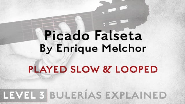 This picado falseta by Enrique Melchor features both the symmetric diminished scale, which is a staple of modern flamenco, and diminished arpeggios, which are somewhat more traditional. You may find you disagree with the fingerings given, which is fine if you find an easier way for you to play th...